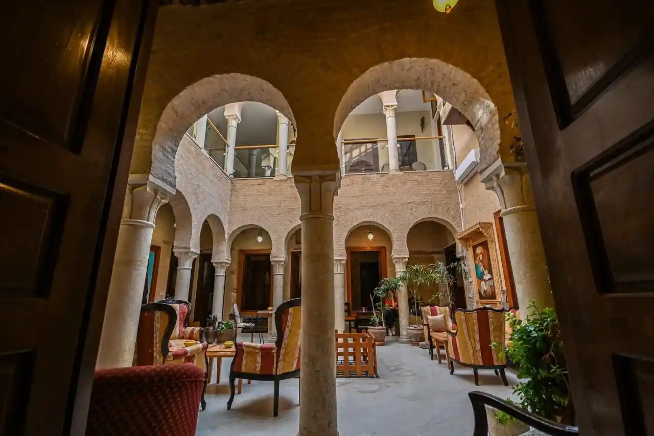 Situé au cœur de la médina de Kairouan, le قصر الحران Palais Harran est un joyau architectural qui vous transporte dans le passé tout en vous offrant un confort moderne. Ce magnifique palais, construit en l’honneur de l’épouse du propriétaire, rappelle la grandeur du Taj Mahal avec ses trois étages, ses chambres élégantes et ses cours ouvertes.